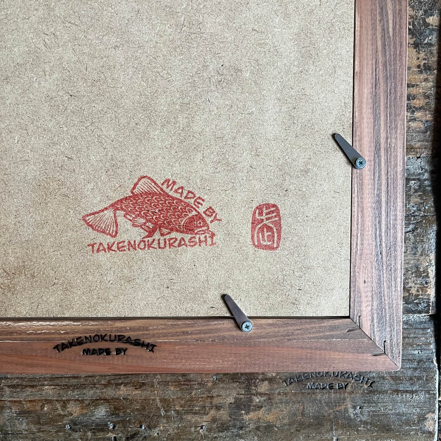 MADE BY TAKENOKURASHIではすべて一点物作品になります。天然木の質感温もりをそのまま生かしカット、研磨、トリマー、材質を作家自ら選び、亜麻仁油ベースで木の呼吸を妨げない安心安全天然自然塗料で仕上げています。製品概念は無く額縁も一つの作品として一つ一つ全ての工程を1人のアート作家が手作業で作り上げています。作業中でのムラ、ダメージ等作品の一環としてご理解ください。ここにしかない二刀流作家のフレームとアートを組み合わせて世界にただ一つだけの作品をあなたへお届けします。