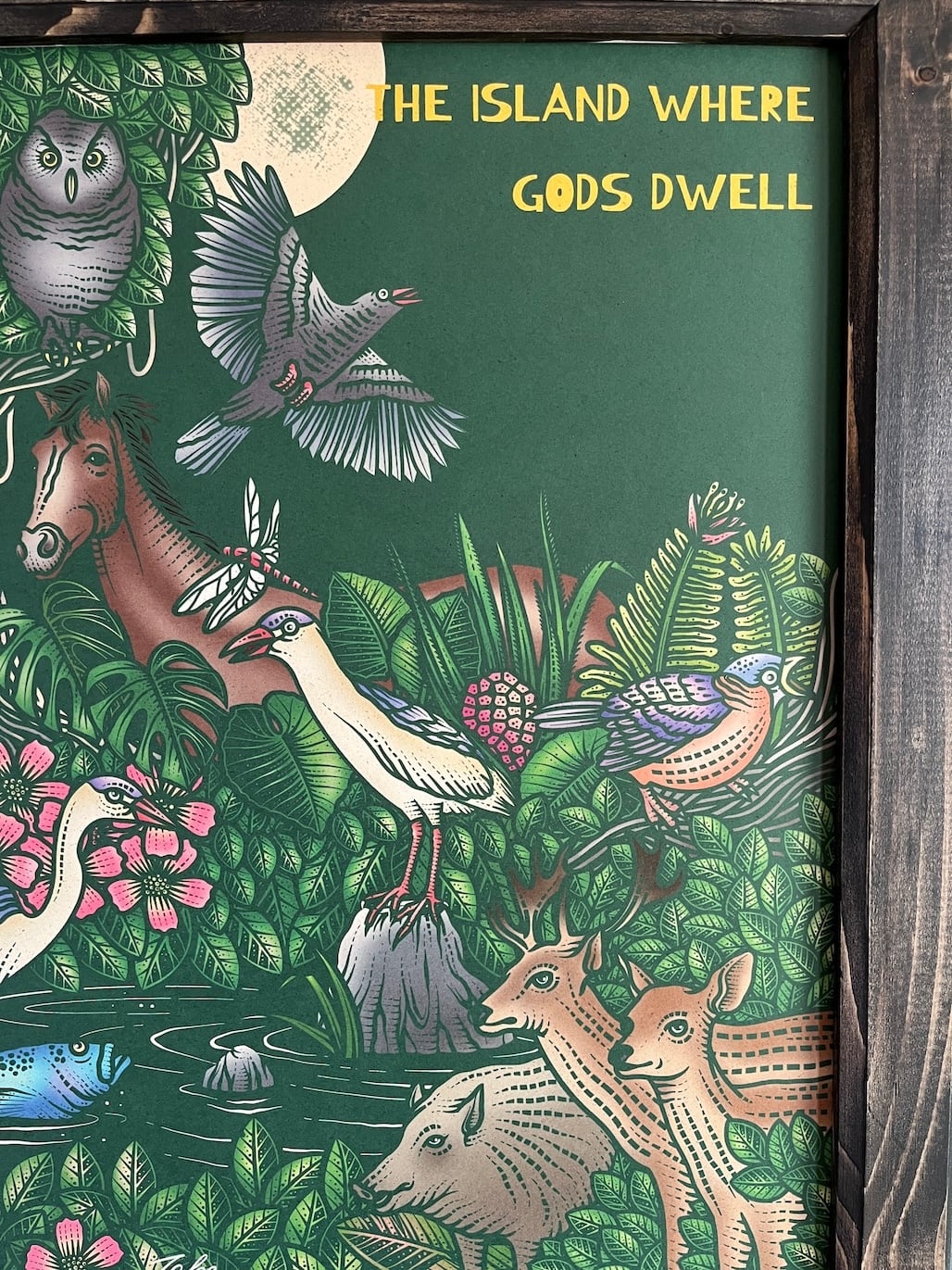 (作品紹介)旅を続ける中で出会った沢山の生息動物や植物、花、歴史ある自然の色や空気を身体いっぱいに感じその島の喜びを表現しました。