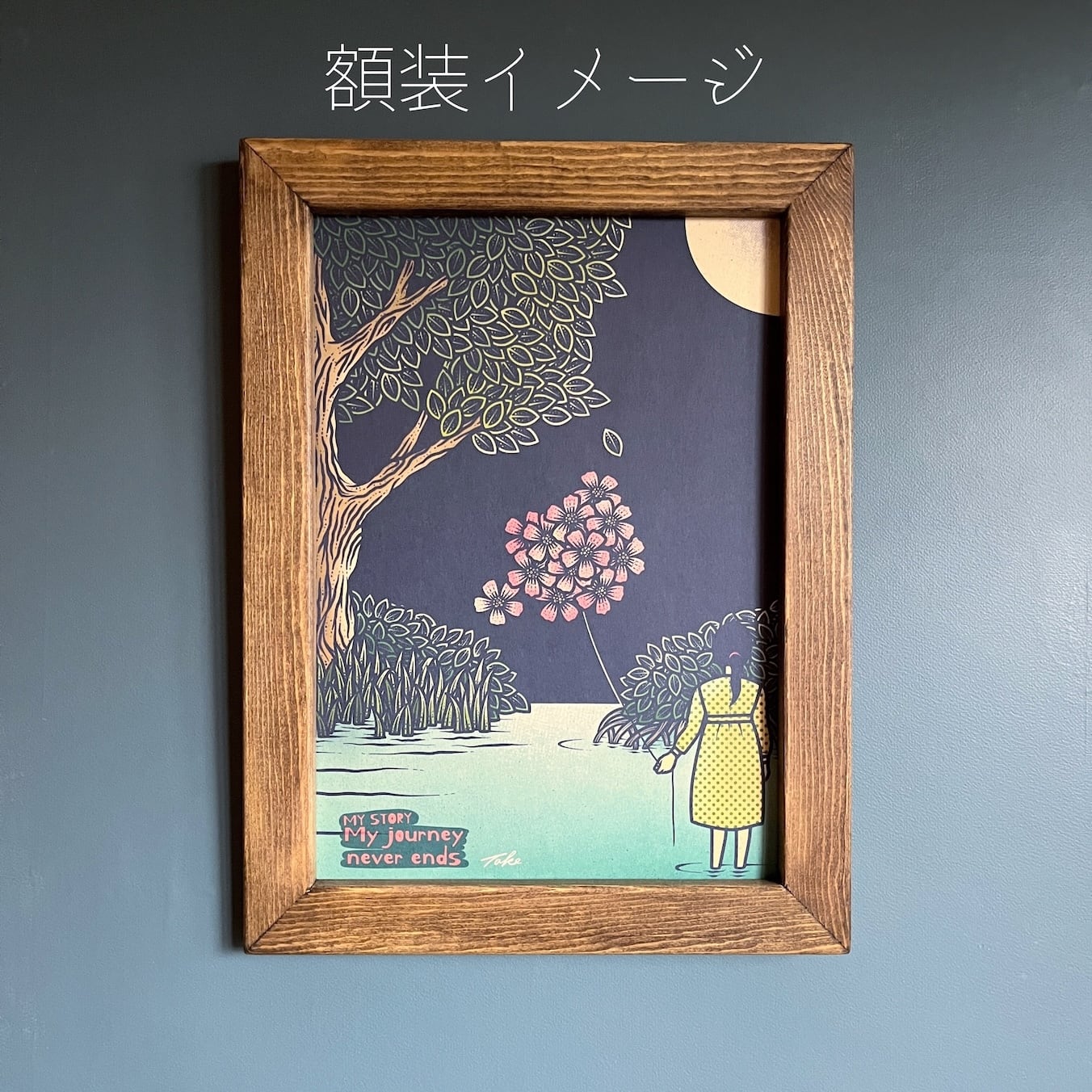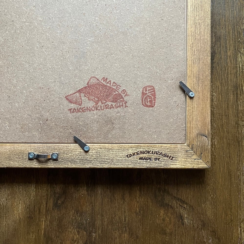 MADE BY TAKENOKURASHIではすべて一点物作品になります。天然木の質感温もりをそのまま生かしカット、研磨、トリマー、材質を作家自ら選び、亜麻仁油ベースで木の呼吸を妨げない安心安全天然自然塗料で仕上げています。製品概念は無く額縁も一つの作品として一つ一つ全ての工程を1人のアート作家が手作業で作り上げています。作業中でのムラ、ダメージ等作品の一環としてご理解ください。ここにしかない二刀流作家のフレームとアートを組み合わせ世界にただ一つだけの作品をあなたへお届けします。