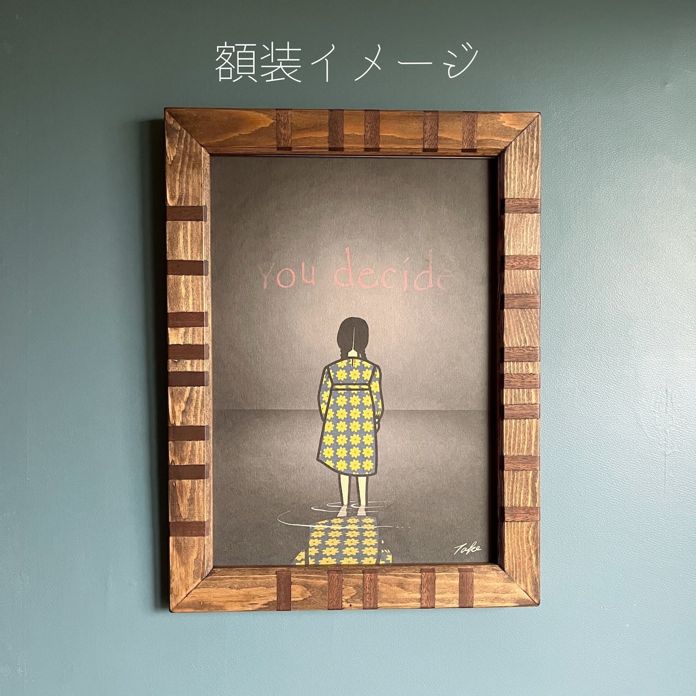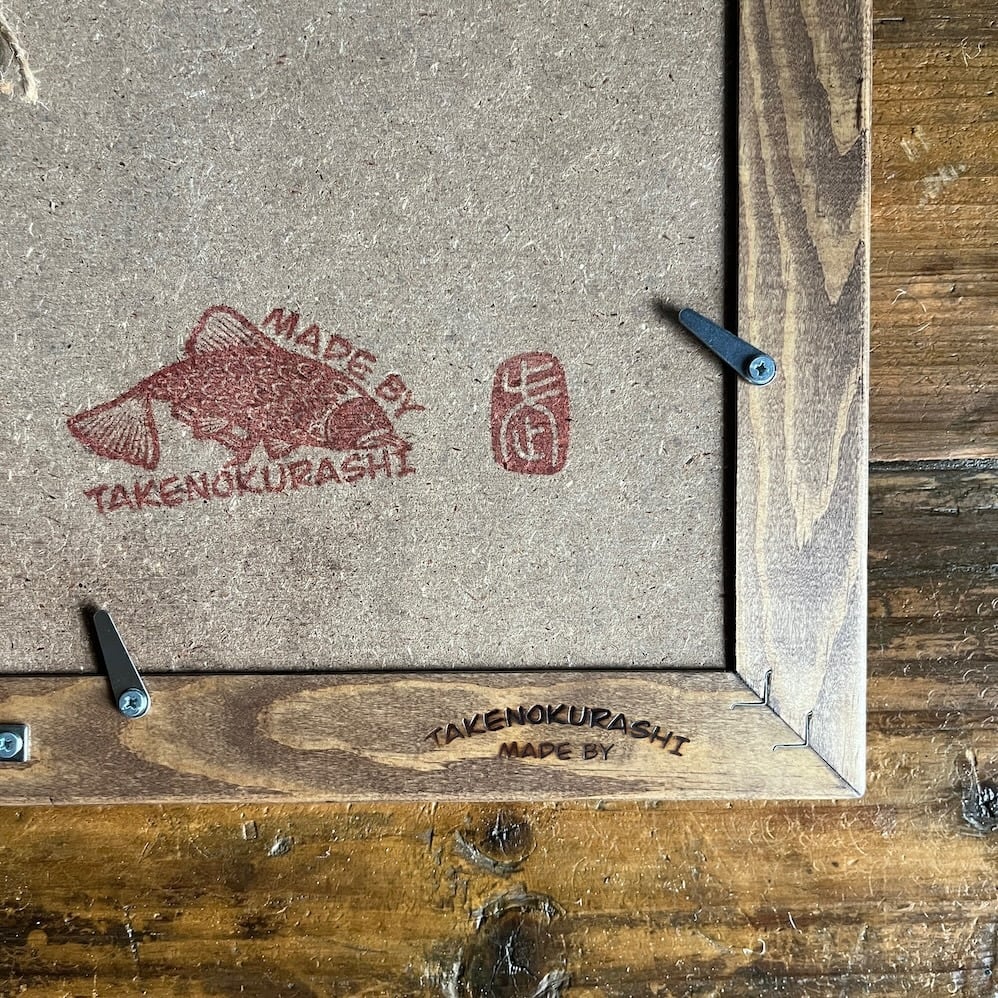 MADE BY TAKENOKURASHIではすべて一点物作品になります。天然木の質感温もりをそのまま生かしカット、研磨、トリマー、材質を作家自ら選び、亜麻仁油ベースで木の呼吸を妨げない安心安全天然自然塗料で仕上げています。製品概念は無く額縁も一つの作品として一つ一つ全ての工程を1人のアート作家が手作業で作り上げています。作業中でのムラ、ダメージ等作品の一環としてご理解ください。ここにしかない二刀流作家のフレームとアートを組み合わせて世界にただ一つだけの作品をあなたへお届けします。