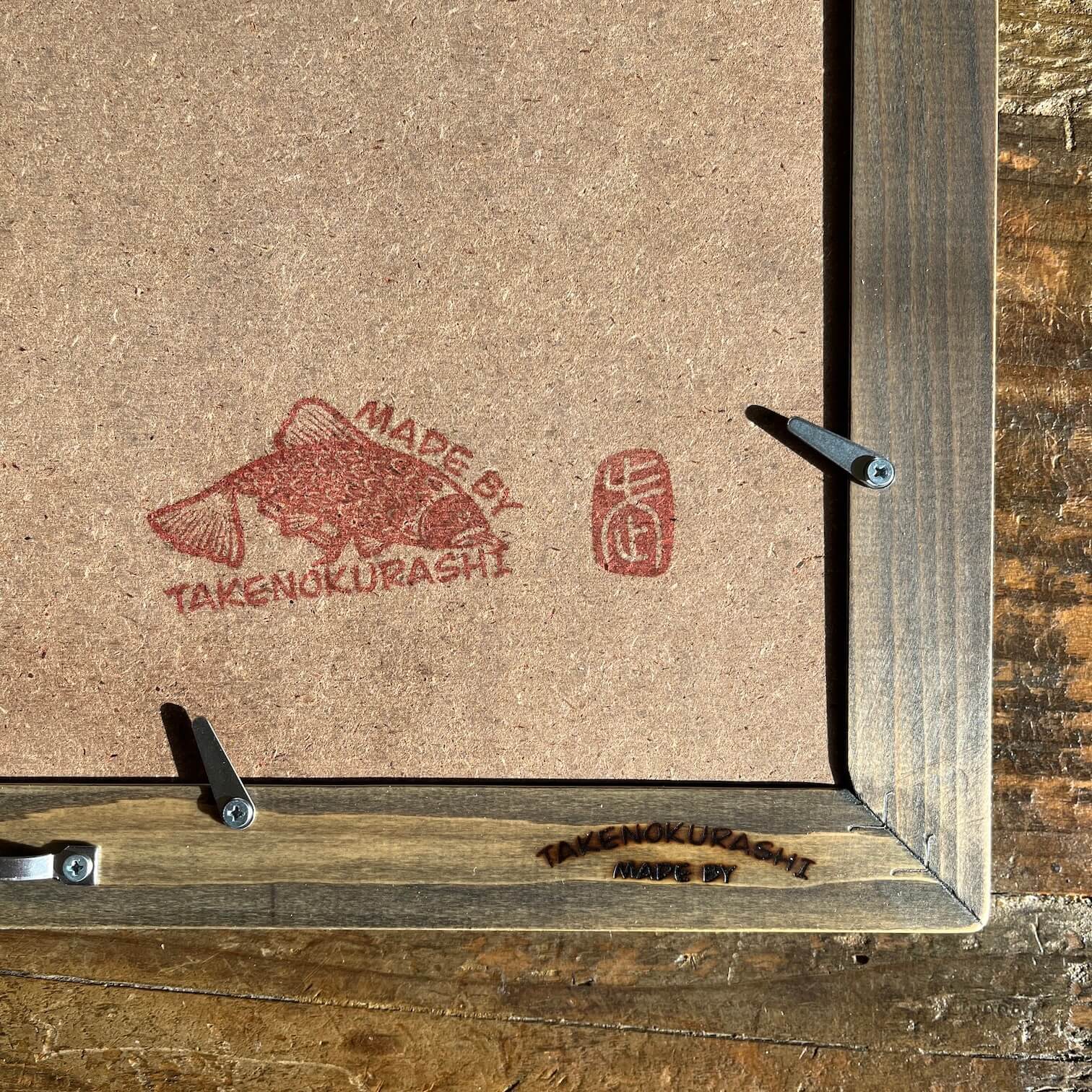 MADE BY TAKENOKURASHIではすべて一点物作品になります。天然木の質感温もりをそのまま生かしカット、研磨、トリマー、材質を作家自ら選び、亜麻仁油ベースで木の呼吸を妨げない安心安全天然自然塗料で仕上げています。製品概念は無く額縁も一つの作品として一つ一つ全ての工程を1人のアート作家が手作業で作り上げています。作業中でのムラ、ダメージ等作品の一環としてご理解ください。ここにしかない二刀流作家のフレームとアートを組み合わせて世界にただ一つだけの作品をあなたへお届けします。