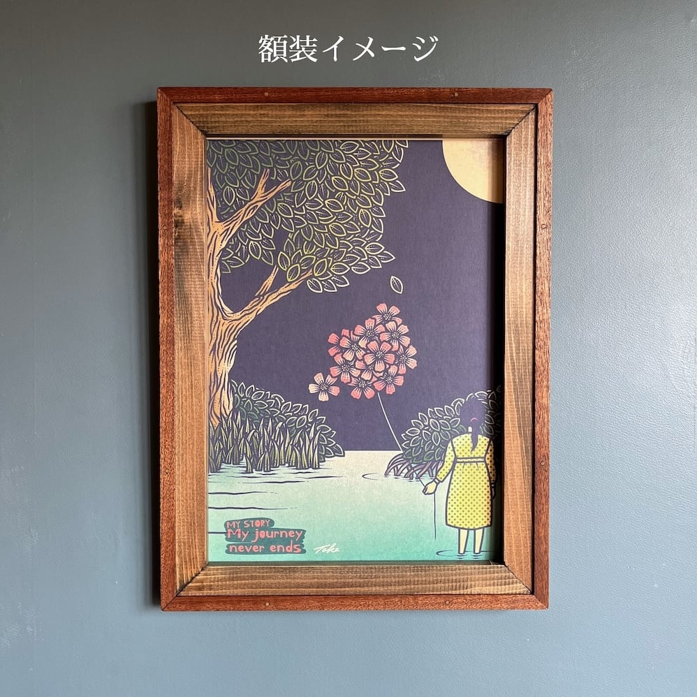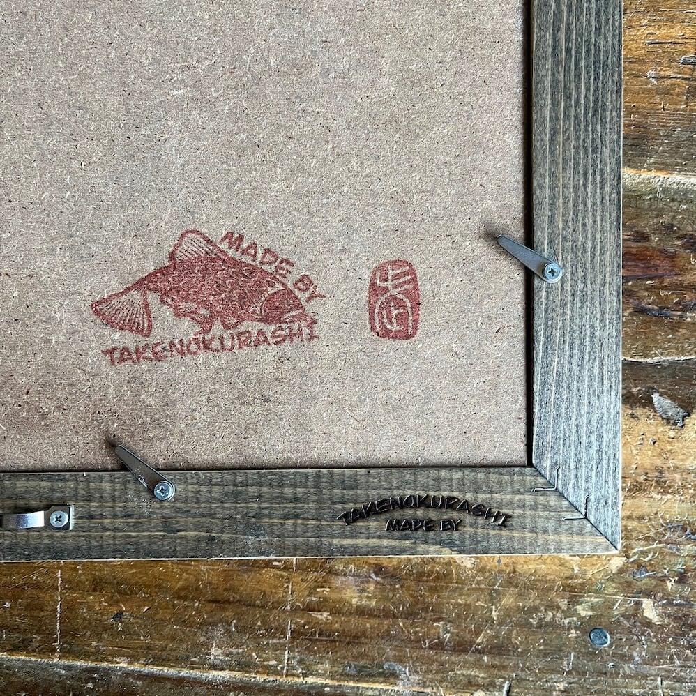 MADE BY TAKENOKURASHIではすべて一点物作品になります。天然木の質感温もりをそのまま生かしカット、研磨、トリマー、材質を作家自ら選び、亜麻仁油ベースで木の呼吸を妨げない安心安全天然自然塗料で仕上げています。製品概念は無く額縁も一つの作品として一つ一つ全ての工程を1人のアート作家が手作業で作り上げています。作業中でのムラ、ダメージ等作品の一環としてご理解ください。ここにしかない二刀流作家のフレームとアートを組み合わせて世界にただ一つだけの作品をあなたへお届けします。