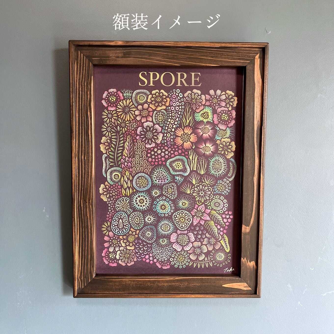 MADE BY TAKENOKURASHIではすべて一点物作品になります。天然木の質感温もりをそのまま生かしカット、研磨、トリマー、材質を作家自ら選び、亜麻仁油ベースで木の呼吸を妨げない安心安全天然自然塗料で仕上げています。製品概念は無く額縁も一つの作品として一つ一つ全ての工程を1人のアート作家が手作業で作り上げています。作業中でのムラ、ダメージ等作品の一環としてご理解ください。ここにしかない二刀流作家のフレームとアートを組み合わせて世界にただ一つだけの作品をあなたへお届けします。