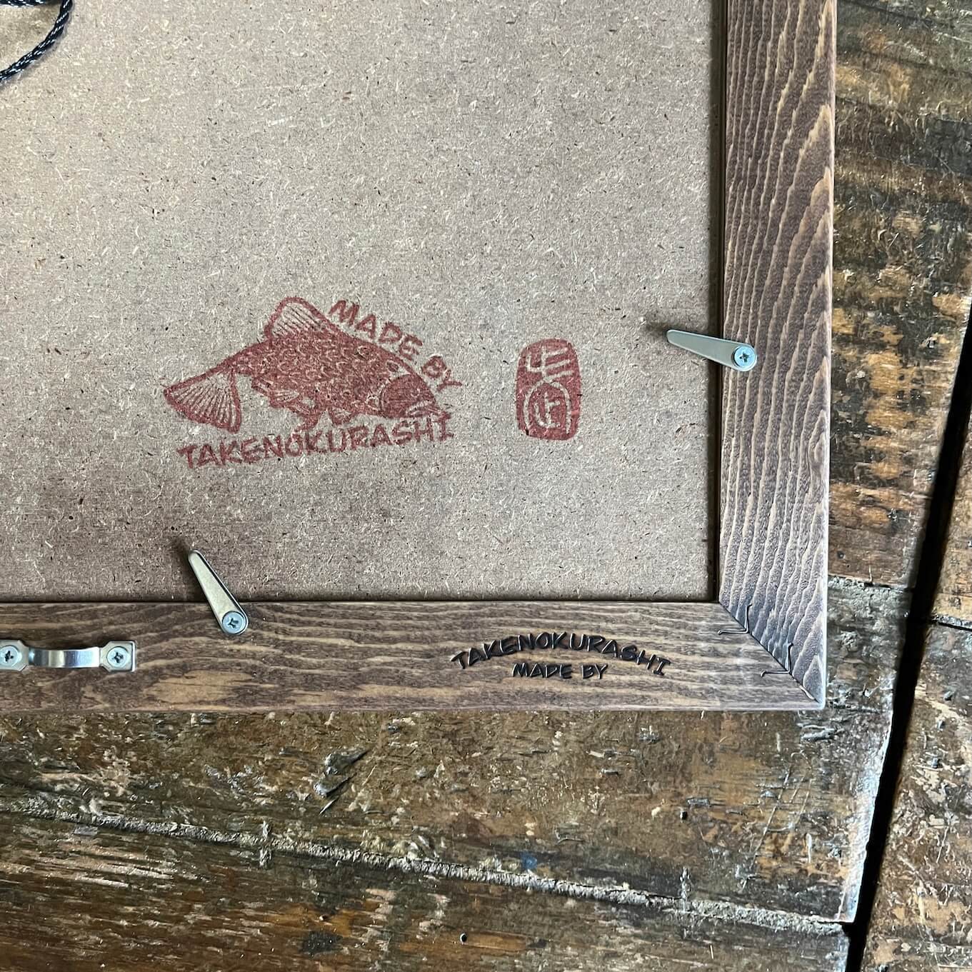 MADE BY TAKENOKURASHIではすべて一点物作品になります。天然木の質感温もりをそのまま生かしカット、研磨、トリマー、材質を作家自ら選び、亜麻仁油ベースで木の呼吸を妨げない安心安全天然自然塗料で仕上げています。製品概念は無く額縁も一つの作品として一つ一つ全ての工程を1人のアート作家が手作業で作り上げています。作業中でのムラ、ダメージ等作品の一環としてご理解ください。ここにしかない二刀流作家のフレームとアートを組み合わせ世界にただ一つだけの作品をあなたへお届けします。