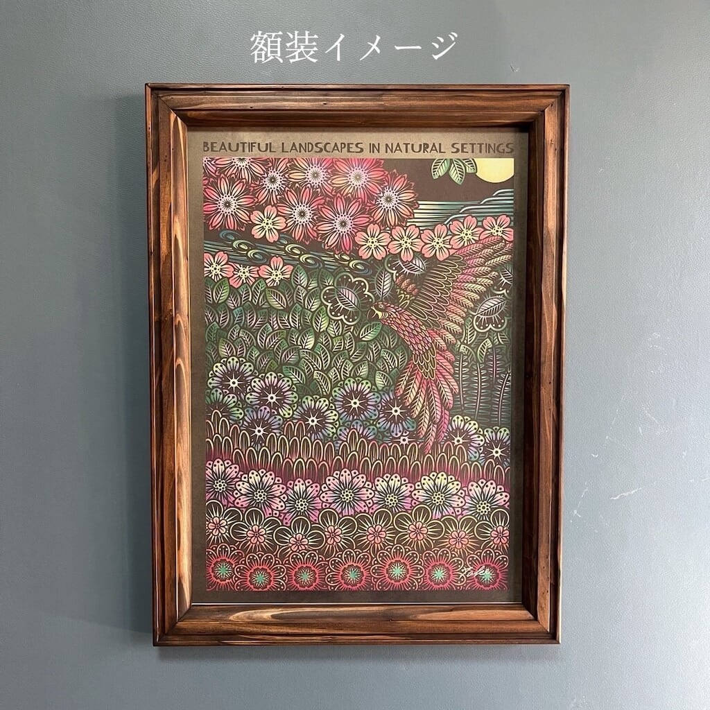 MADE BY TAKENOKURASHIではすべて一点物作品になります。天然木の質感温もりをそのまま生かしカット、研磨、トリマー、材質を作家自ら選び、亜麻仁油ベースで木の呼吸を妨げない安心安全天然自然塗料で仕上げています。製品概念は無く額縁も一つの作品として一つ一つ全ての工程を1人のアート作家が手作業で作り上げています。作業中でのムラ、ダメージ等作品の一環としてご理解ください。ここにしかない二刀流作家のフレームとアートを組み合わせて世界にただ一つだけの作品をあなたへお届けします。