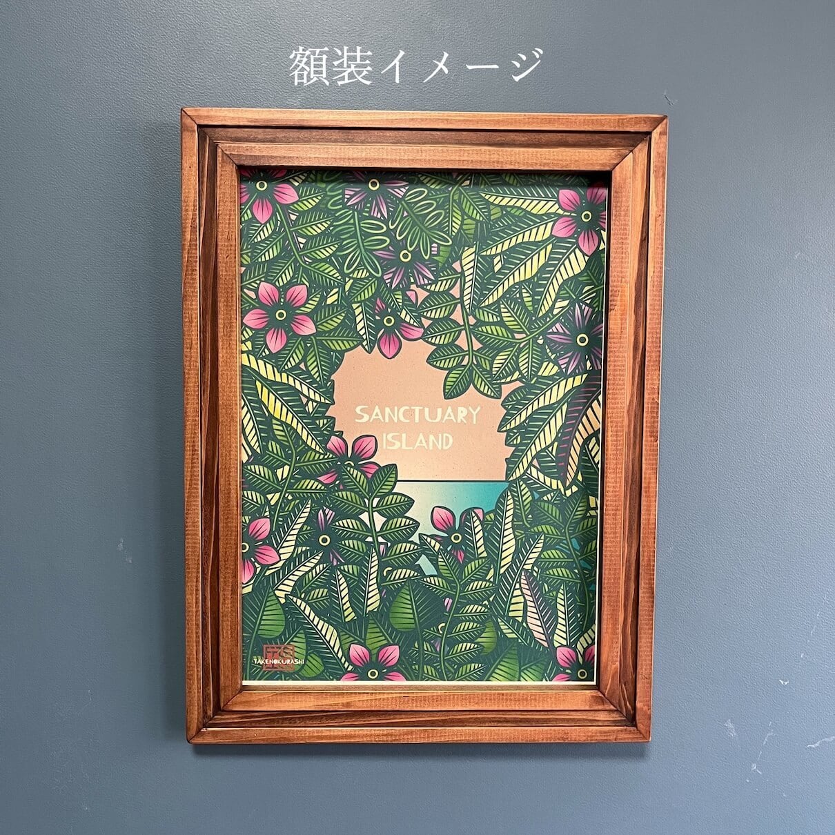 MADE BY TAKENOKURASHIではすべて一点物作品になります。天然木の質感温もりをそのまま生かしカット、研磨、トリマー、材質を作家自ら選び、亜麻仁油ベースで木の呼吸を妨げない安心安全天然自然塗料で仕上げています。製品概念は無く額縁も一つの作品として一つ一つ全ての工程を1人のアート作家が手作業で作り上げています。作業中でのムラ、ダメージ等作品の一環としてご理解ください。ここにしかない二刀流作家のフレームとアートを組み合わせて世界にただ一つだけの作品をあなたへお届けします。
