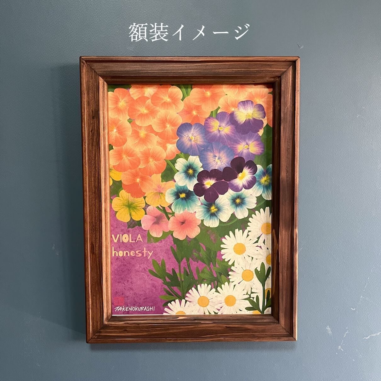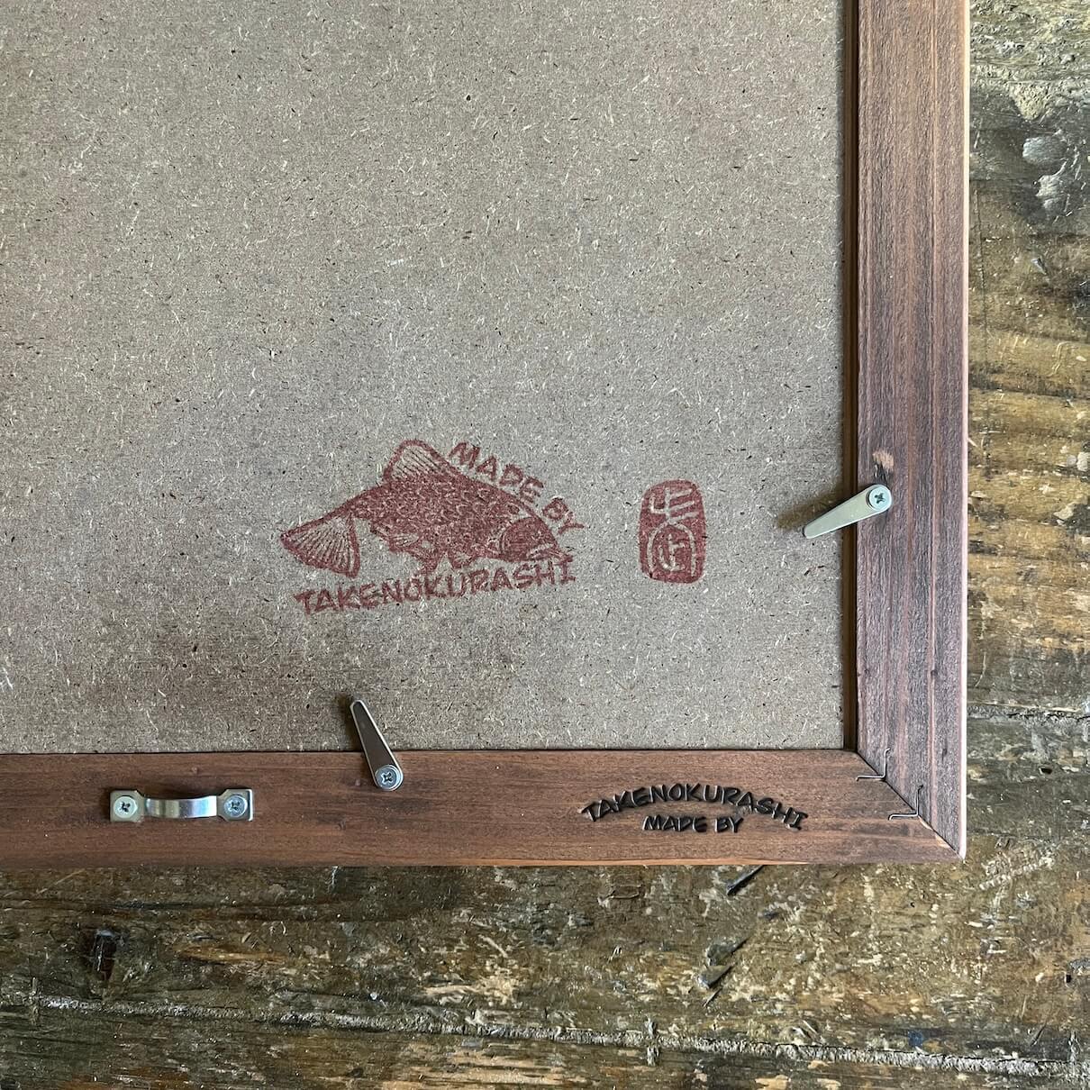 MADE BY TAKENOKURASHIではすべて一点物作品になります。天然木の質感温もりをそのまま生かしカット、研磨、トリマー、材質を作家自ら選び、亜麻仁油ベースで木の呼吸を妨げない安心安全天然自然塗料で仕上げています。製品概念は無く額縁も一つの作品として一つ一つ全ての工程を1人のアート作家が手作業で作り上げています。作業中でのムラ、ダメージ等作品の一環としてご理解ください。ここにしかない二刀流作家のフレームとアートを組み合わせて世界にただ一つだけの作品をあなたへお届けします。
