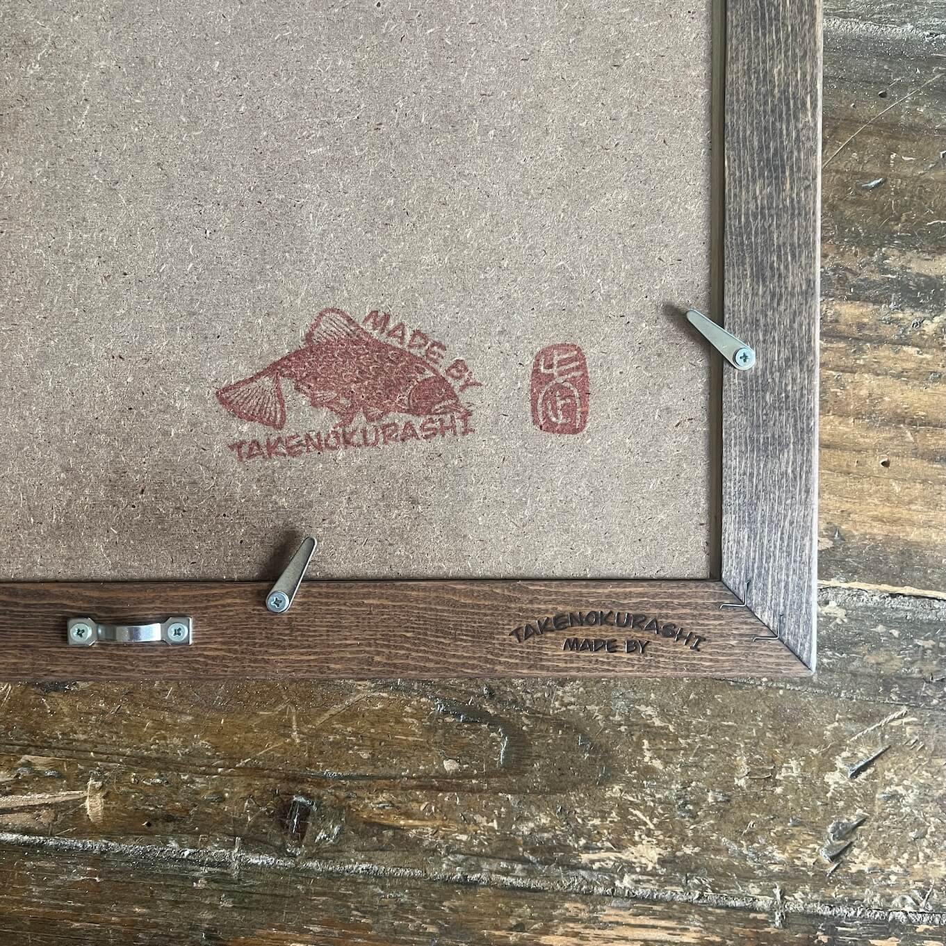 MADE BY TAKENOKURASHIではすべて一点物作品になります。天然木の質感温もりをそのまま生かしカット、研磨、トリマー、材質を作家自ら選び、亜麻仁油ベースで木の呼吸を妨げない安心安全天然自然塗料で仕上げています。製品概念は無く額縁も一つの作品として一つ一つ全ての工程を1人のアート作家が手作業で作り上げています。作業中でのムラ、ダメージ等作品の一環としてご理解ください。ここにしかない二刀流作家のフレームとアートを組み合わせて世界にただ一つだけの作品をあなたへお届けします。