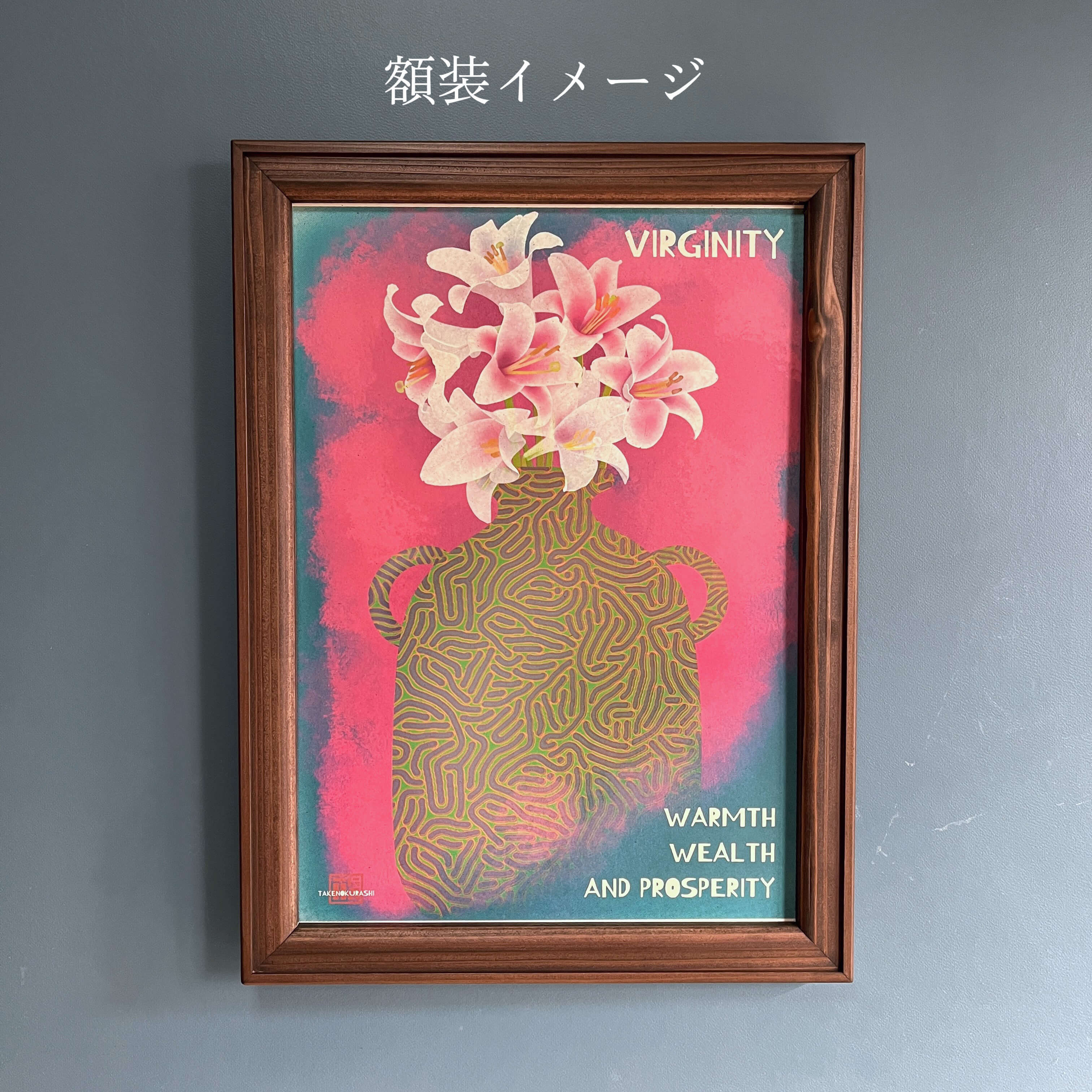 MADE BY TAKENOKURASHIではすべて一点物作品になります。天然木の質感温もりをそのまま生かしカット、研磨、トリマー、材質を作家自ら選び、亜麻仁油ベースで木の呼吸を妨げない安心安全天然自然塗料で仕上げています。製品概念は無く額縁も一つの作品として一つ一つ全ての工程を1人のアート作家が手作業で作り上げています。作業中でのムラ、ダメージ等作品の一環としてご理解ください。ここにしかない二刀流作家のフレームとアートを組み合わせて世界にただ一つだけの作品をあなたへお届けします。