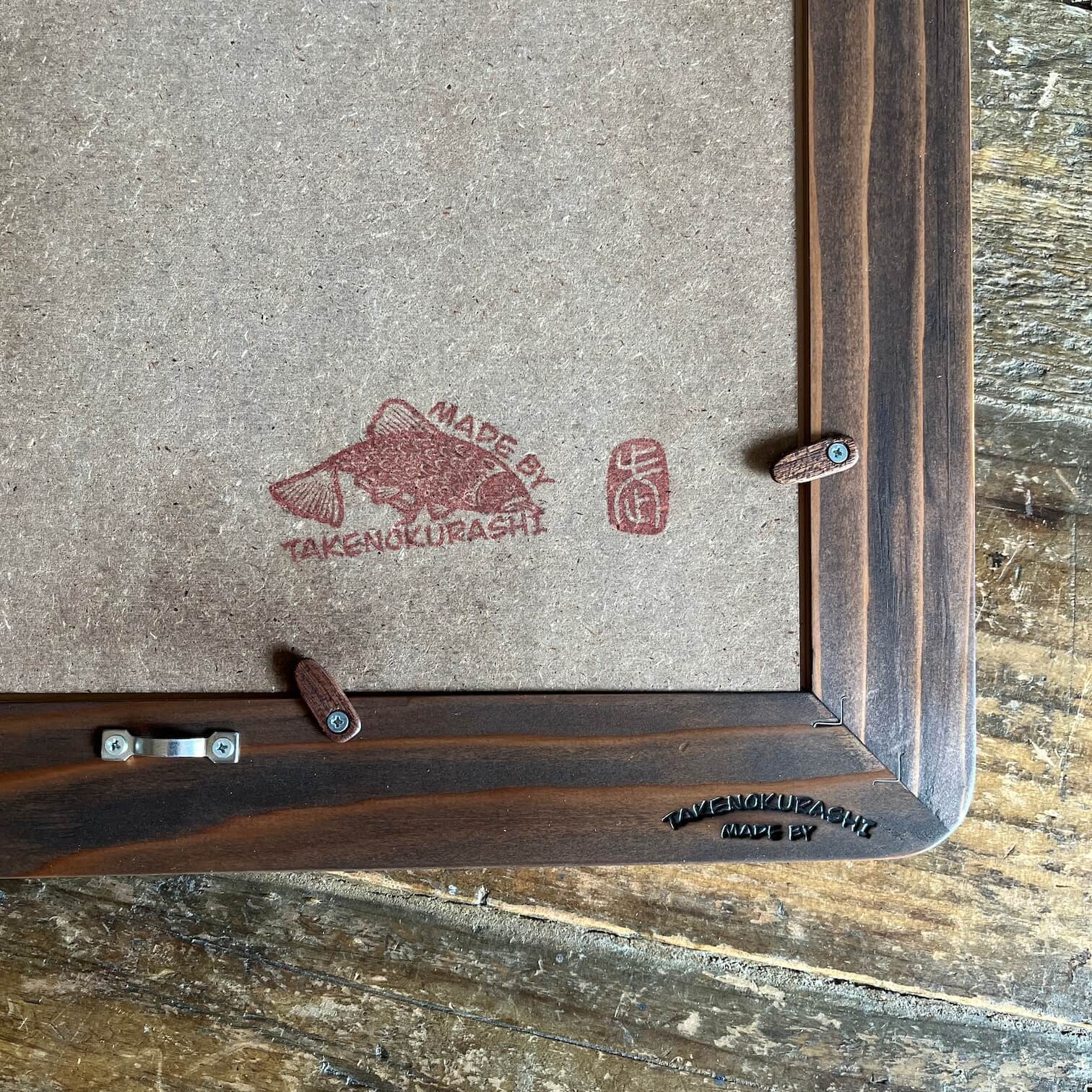 MADE BY TAKENOKURASHIではすべて一点物作品になります。天然木の質感温もりをそのまま生かしカット、研磨、トリマー、材質を作家自ら選び、亜麻仁油ベースで木の呼吸を妨げない安心安全天然自然塗料で仕上げています。製品概念は無く額縁も一つの作品として一つ一つ全ての工程を1人のアート作家が手作業で作り上げています。作業中でのムラ、ダメージ等作品の一環としてご理解ください。ここにしかない二刀流作家のフレームとアートを組み合わせて世界にただ一つだけの作品をあなたへお届けします。