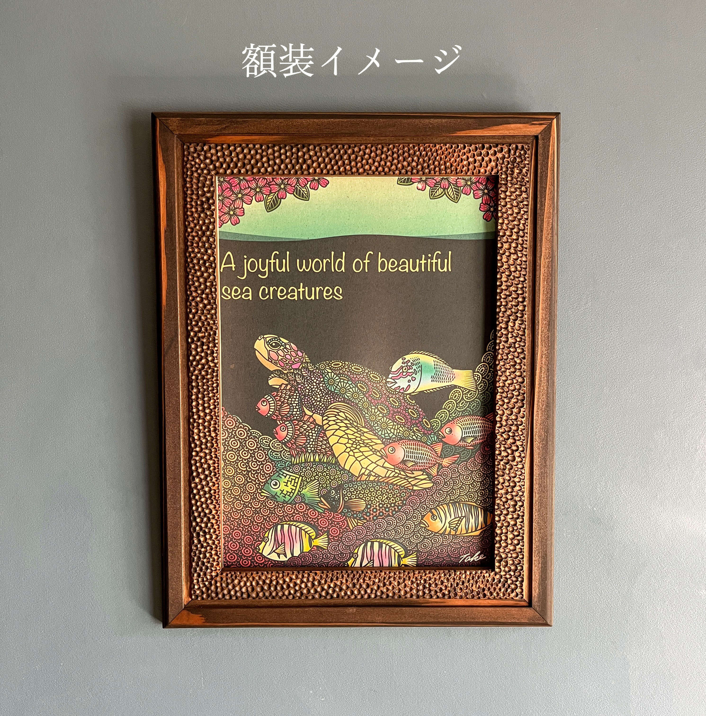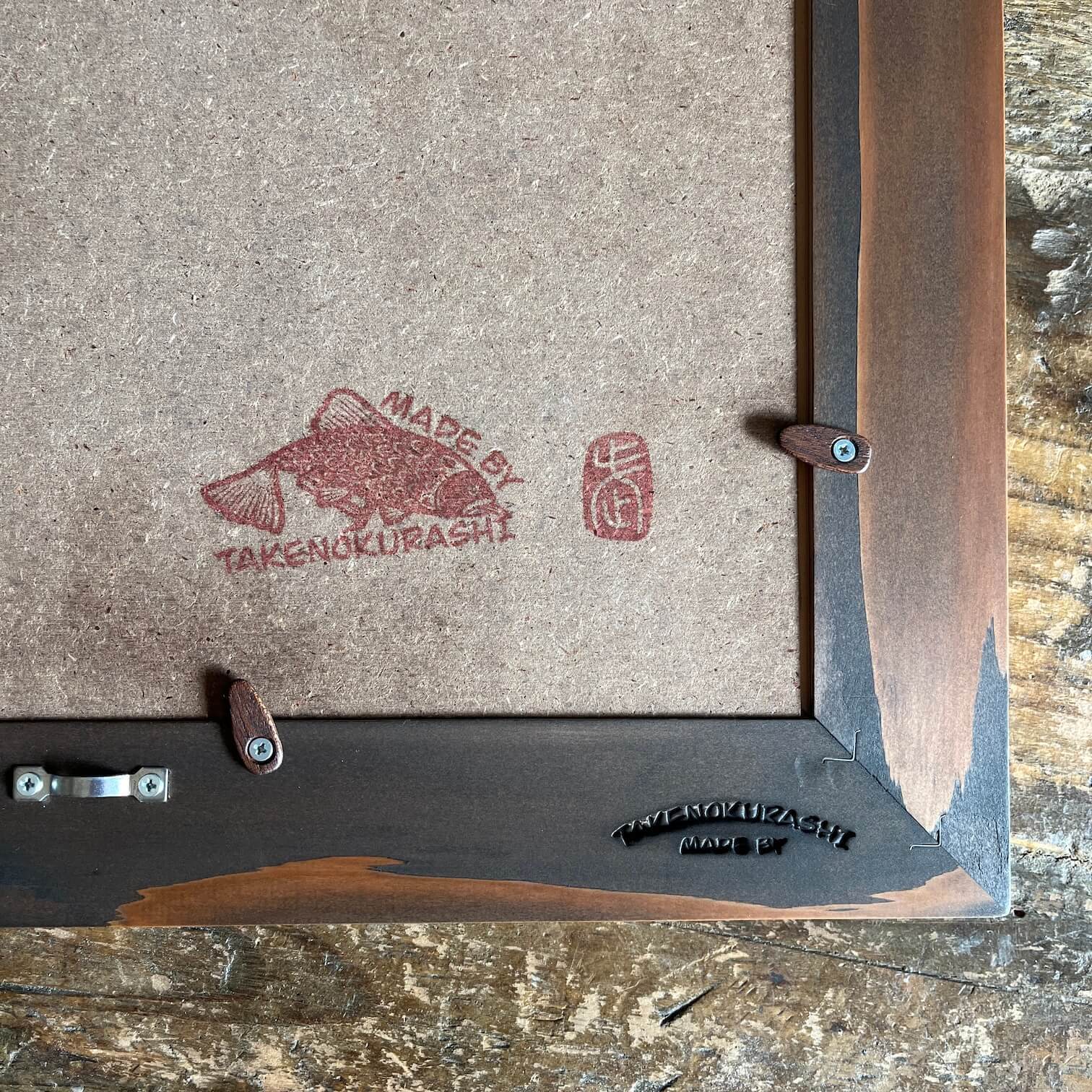 MADE BY TAKENOKURASHIではすべて一点物作品になります。天然木の質感温もりをそのまま生かしカット、研磨、トリマー、材質を作家自ら選び、亜麻仁油ベースで木の呼吸を妨げない安心安全天然自然塗料で仕上げています。製品概念は無く額縁も一つの作品として一つ一つ全ての工程を1人のアート作家が手作業で作り上げています。作業中でのムラ、ダメージ等作品の一環としてご理解ください。ここにしかない二刀流作家のフレームとアートを組み合わせて世界にただ一つだけの作品をあなたへお届けします。