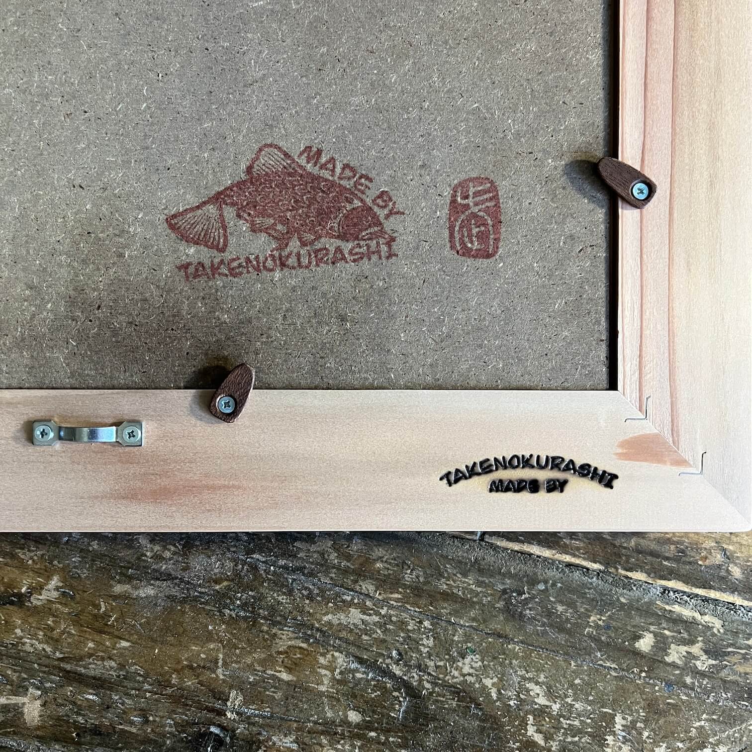 MADE BY TAKENOKURASHIではすべて一点物作品になります。天然木の質感温もりをそのまま生かしカット、研磨、トリマー、材質を作家自ら選び、亜麻仁油ベースで木の呼吸を妨げない安心安全天然自然塗料で仕上げています。製品概念は無く額縁も一つの作品として一つ一つ全ての工程を1人のアート作家が手作業で作り上げています。作業中でのムラ、ダメージ等作品の一環としてご理解ください。ここにしかない二刀流作家のフレームとアートを組み合わせて世界にただ一つだけの作品をあなたへお届けします。