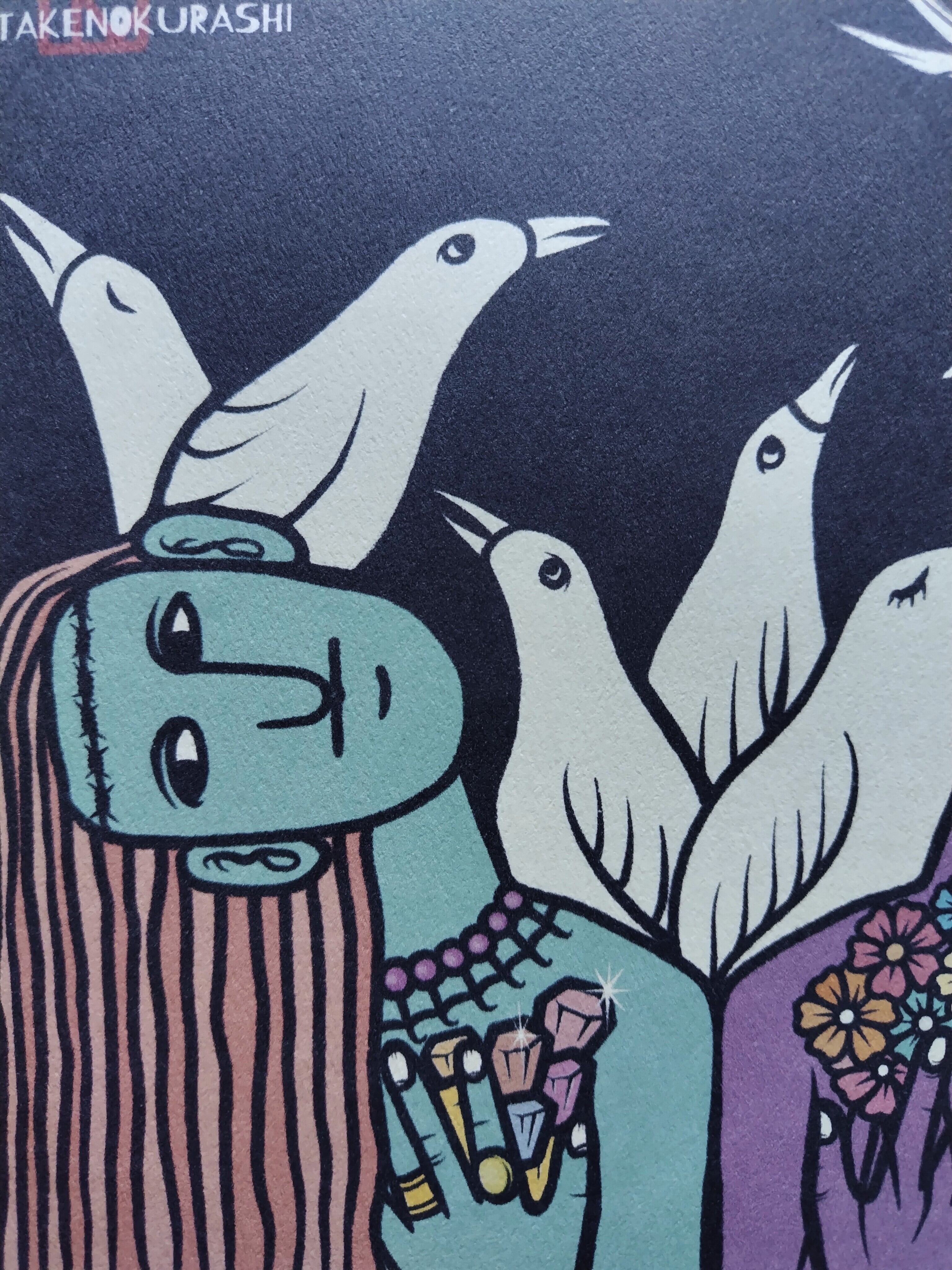 絵画のような芸術性とポスターのようなデザイン性、そこにTAKENOKURASHI独自の持つ感性を組み合わせた、ここにしかないデザインアートが生まれます。