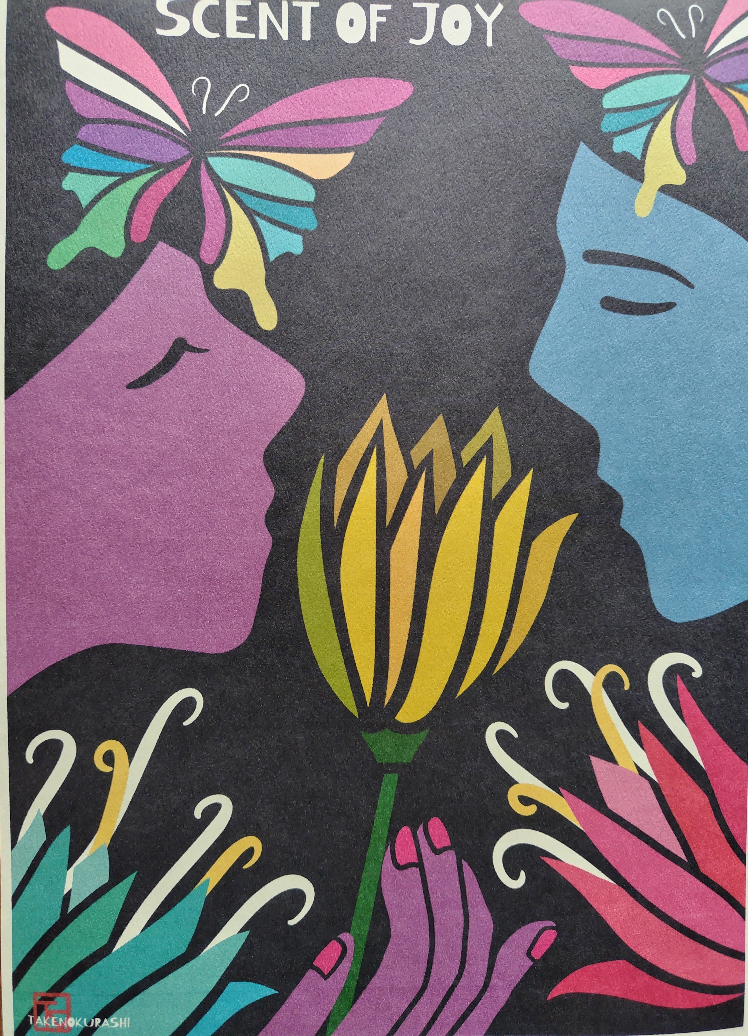 絵画のような芸術性とポスターのようなデザイン性、そこにTAKENOKURASHI独自の持つ感性を組み合わせた、ここにしかないデザインアートが生まれます。