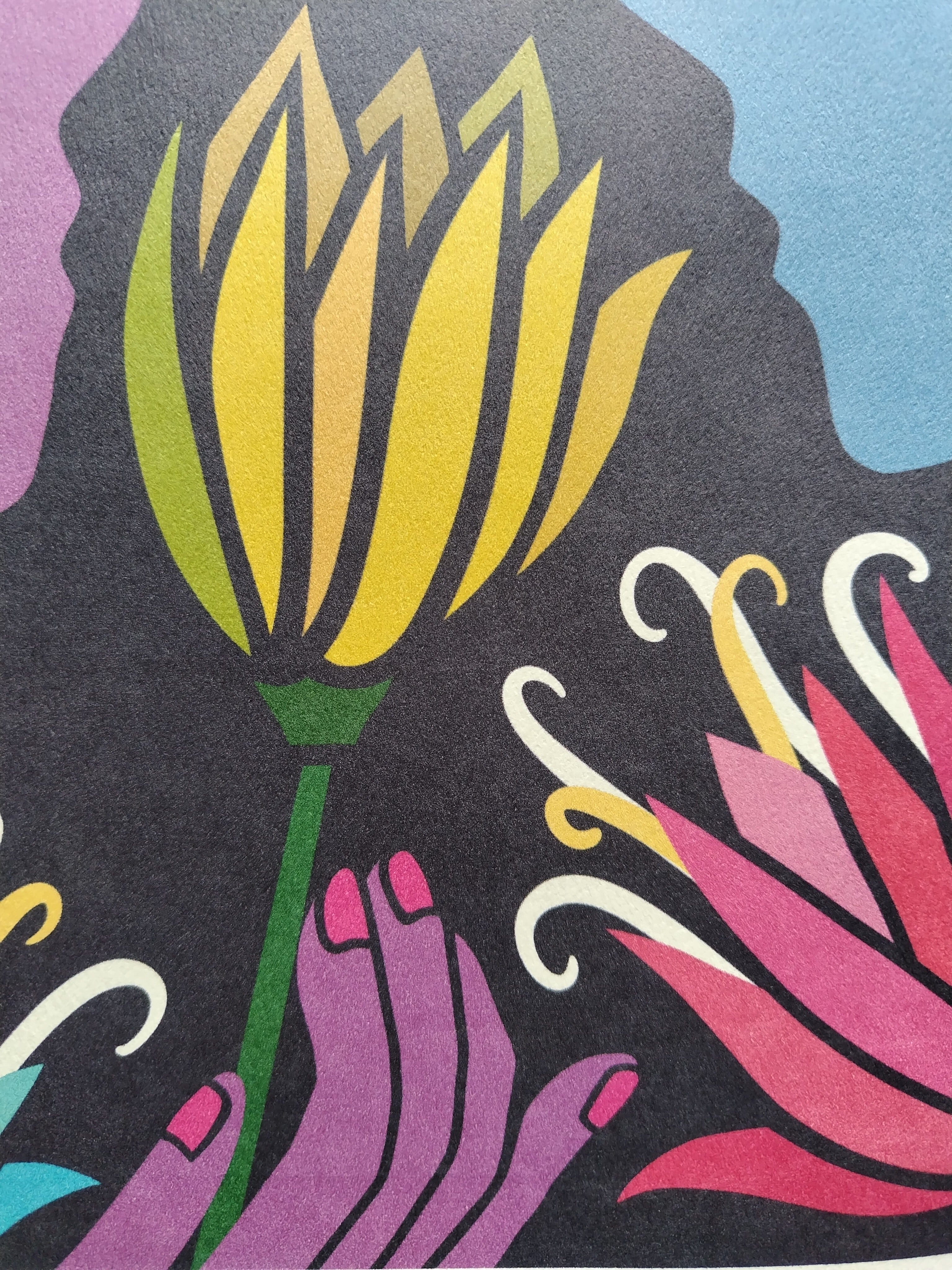 お客様に購入していただいた際にデザインデータから専用アート紙にTAKENOKURASHI専用複合機にて色を吹き付け、色を乗せていきます。時間をかけながらゆっくり(パンを焼いてる時間みたいに^ ^)出来上がりましたらそのまま梱包し発送いたします。何枚も印刷し在庫しているアートでは劣化もいたします。TAKENOKURASHIアートでは一枚一枚大切にお客様にぬくもりのある出来立てのオリジナルアートをお届け致しております。