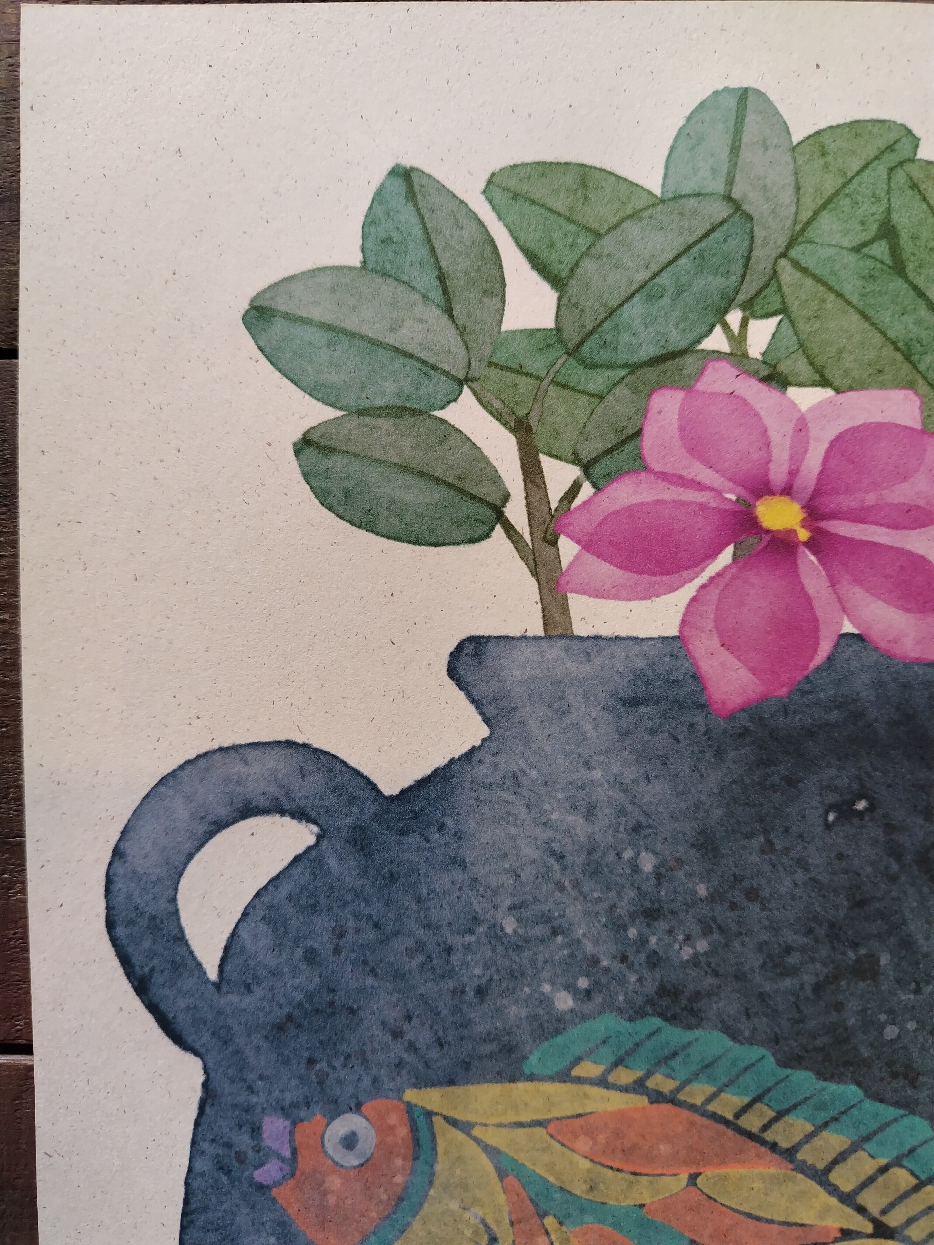 伝統の壺屋焼を味わい深くTAKENOKURASHI技法デザインアートとして再現しました。