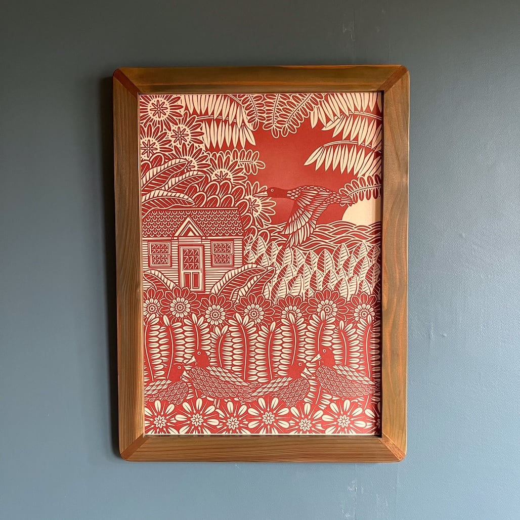 お客様に購入していただいた際にデザインデータから専用アート紙にTAKENOKURASHI専用複合機にて色を吹き付け、色を乗せていきます。時間をかけながらゆっくり(パンを焼いてる時間みたいに^ ^)出来上がりましたらそのまま梱包し発送いたします。何枚も印刷し在庫しているアートでは劣化もいたします。TAKENOKURASHIアートでは一枚一枚大切にお客様にぬくもりのある出来立てのオリジナルアートをお届け致しております。